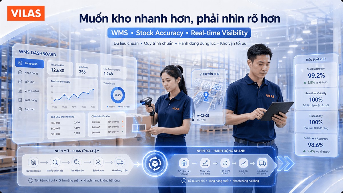 Khi dữ liệu tồn kho thiếu chính xác, doanh nghiệp rất khó tăng tốc hoàn tất đơn. Vì càng xử lý nhanh mà dữ liệu càng sai, sai sót sẽ càng lan rộng. Do đó, muốn kho đi nhanh hơn, trước hết kho phải nhìn rõ hơn.